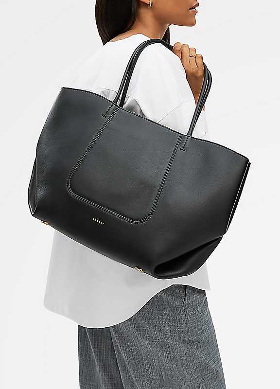 Our 12-hour bag. The Compton is a style you'll use morning till night, with a spacious compartment and zipped canvas pocket inside. Designed with inlaid panelling and beautifully folded base corners that only emphasise the suppleness of the smooth leather.Folded base cornersInlaid panels to Front & backSlim rolled handlesBonded faux suede liningzipped canvas pouch pocketFoil logoComes with a dust bagLeatherDimensions approx. 43W x 26H x 16D cm | casual shoulder bag, shoulder handbags, black leather bag, handbag with zipper, zip purse, shoulder bags, casual black purse, casual everyday bag, smart casual bag, leather shoulder strap, leather top handle handbags, leather shoulder purse, smooth leather purse, black casual handbag, casual leather bag, black handbag zip, bag with zipper, leather shoulder bag, handbag zippers, black shoulder purse