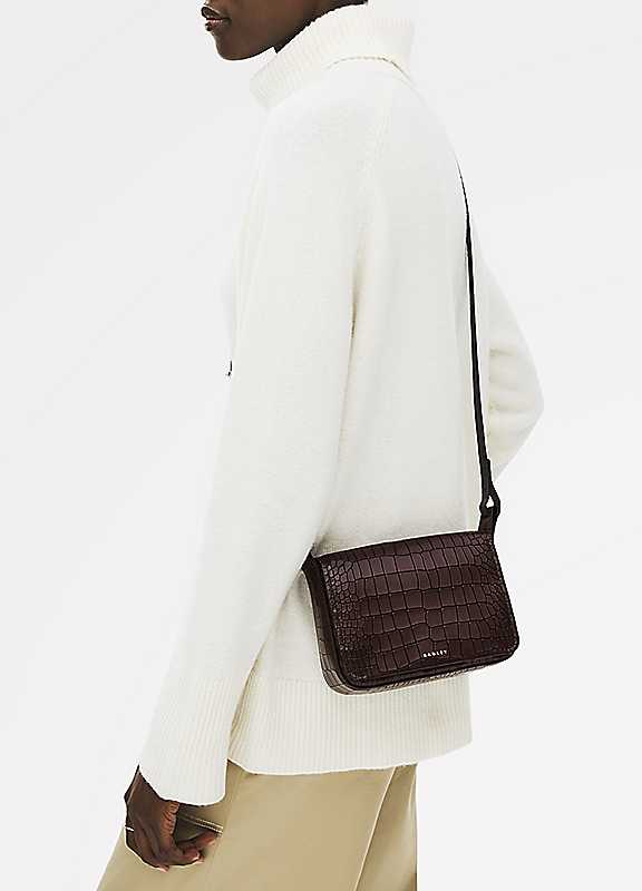 Radley London Westwell Lane Faux Croc Small Flapover Cross Body Bag - Dark Oak - Size ONE SIZE