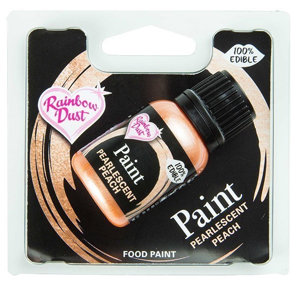 Apply a bold and flawless Pearlescent colour to your baking creations with the Rainbow Dust Edible Food Paint in Peach.