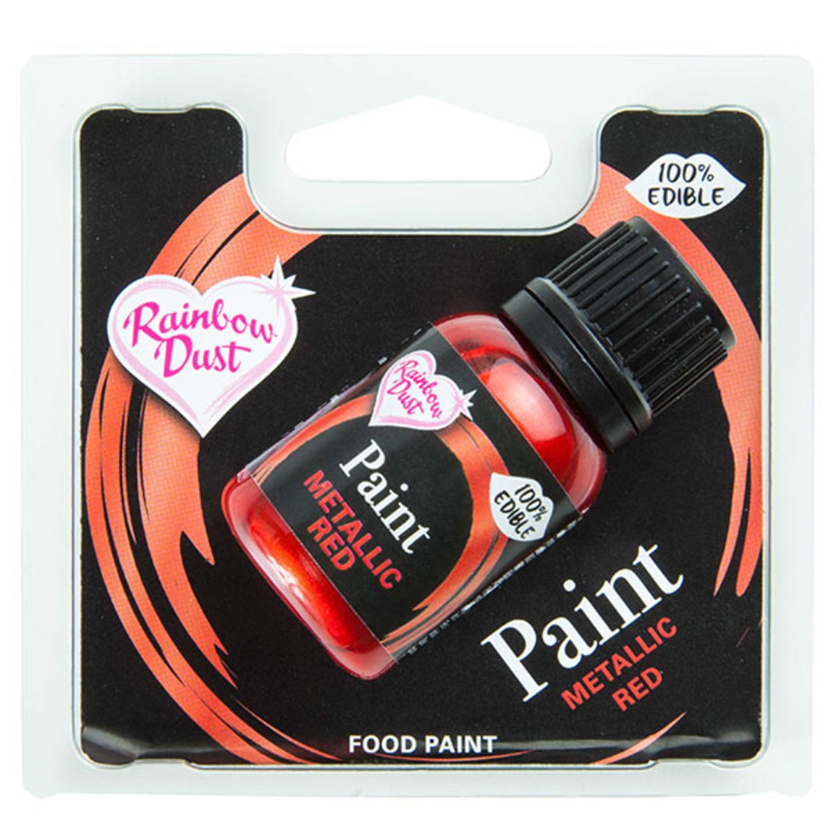 Apply a bold and flawless Metallic colour to your baking creations with the Rainbow Dust Edible Food Paint in Red.