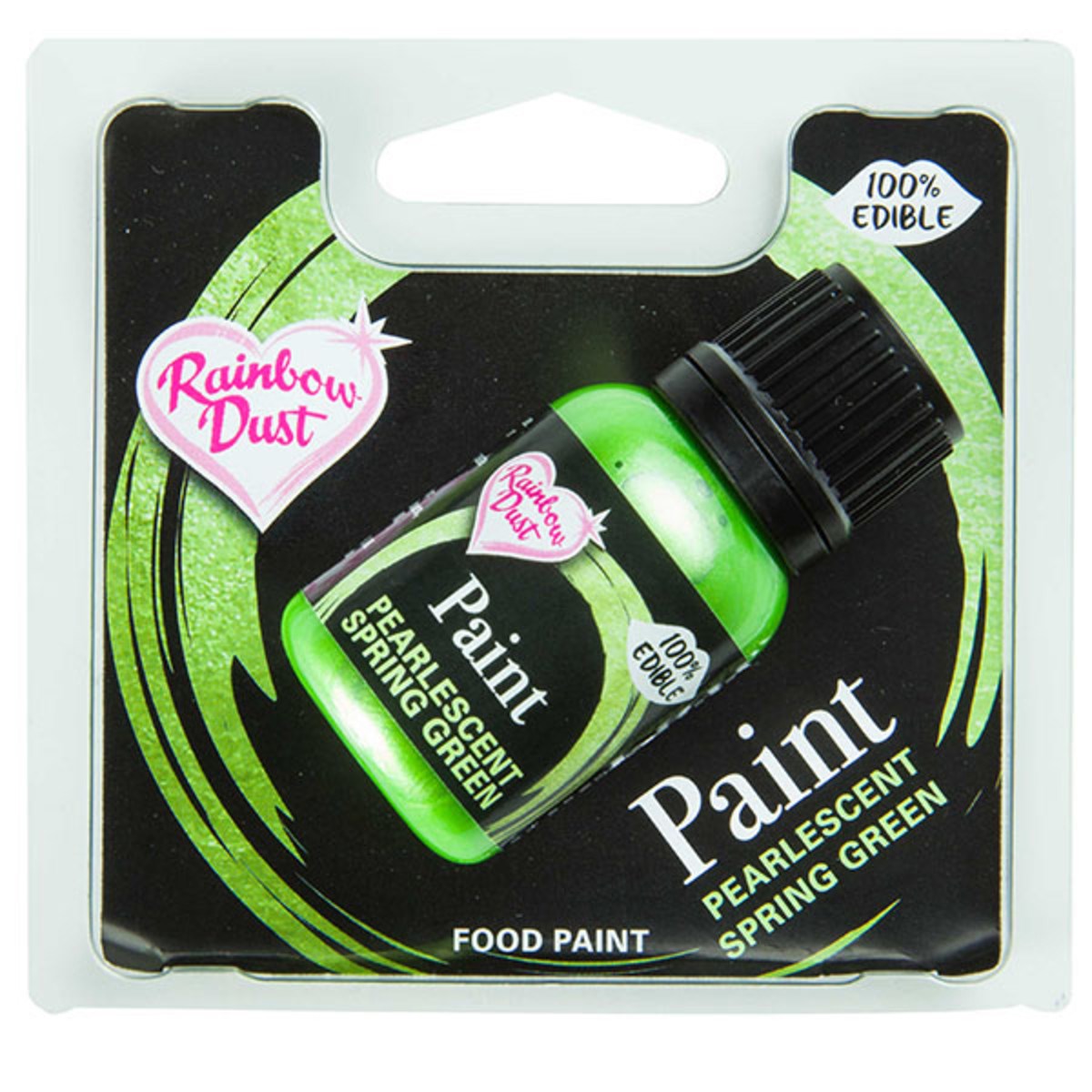Apply a bold and flawless Pearlescent colour to your baking creations with the Rainbow Dust Edible Food Paint in Spring Green.