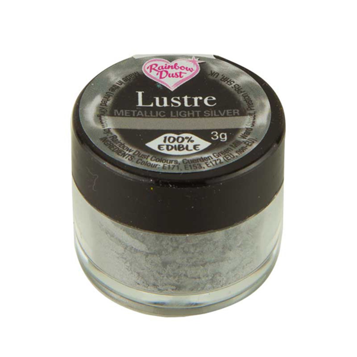 Add a beautiful silky shimmer to your creations with this Rainbow Dust Edible Silk Range in Metallic Light Silver.