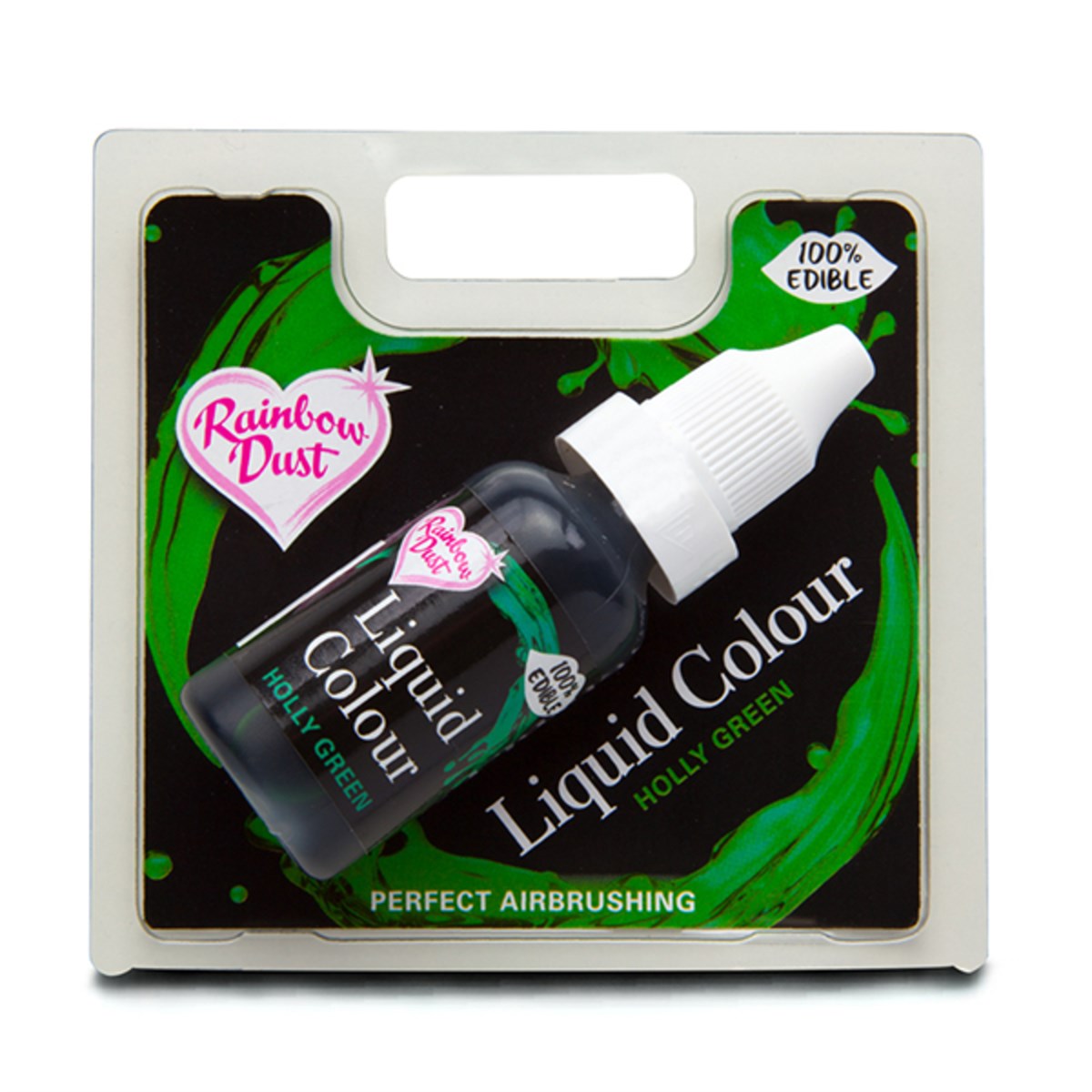 Perfect your colour on every bake with this high-quality Rainbow Dust Liquid Food Colour in Holly Green.