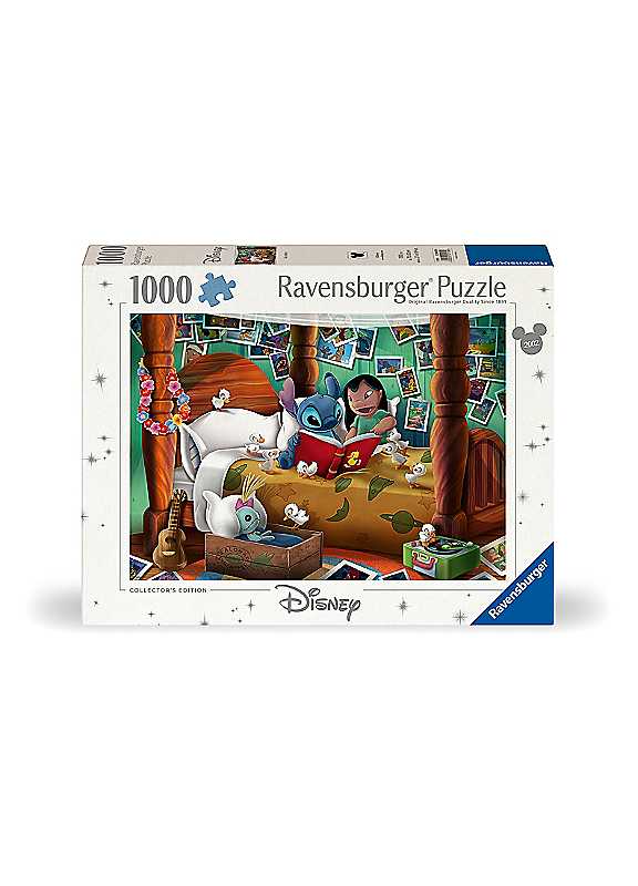 An adorable 1000 piece puzzle featuring Disney's icons Lilo & Stitch at their very best! The newest addition to the Disney Collector's Edition puzzle collection.Ravensburger's 1000 piece jigsaws are crafted with premium quality materials. Great for Adults and ideal puzzles for Children 12 years old and up. Fully complies with all necessary UK and EU testing standards.Best selling puzzle brand worldwide - With over 1 billion puzzles sold, our jigsaw puzzles make ideal gifts for women, great gifts for men and fit perfectly on our puzzle board. Our puzzles use an exclusive, extra-thick cardboard combined with our fine, linen structured paper to create a glare-free puzzle image and give you the best experience possible.Positively Puzzling - From fun family times together to long term health benefits and day-to-day mindful moments, there are so many positives about the humble Jigsaw! They make a great birthday gift or smashing Christmas gift.Age suitability: 12 yearsSize approx. 70 x 50 cmNot suitable for children under 3 years old.