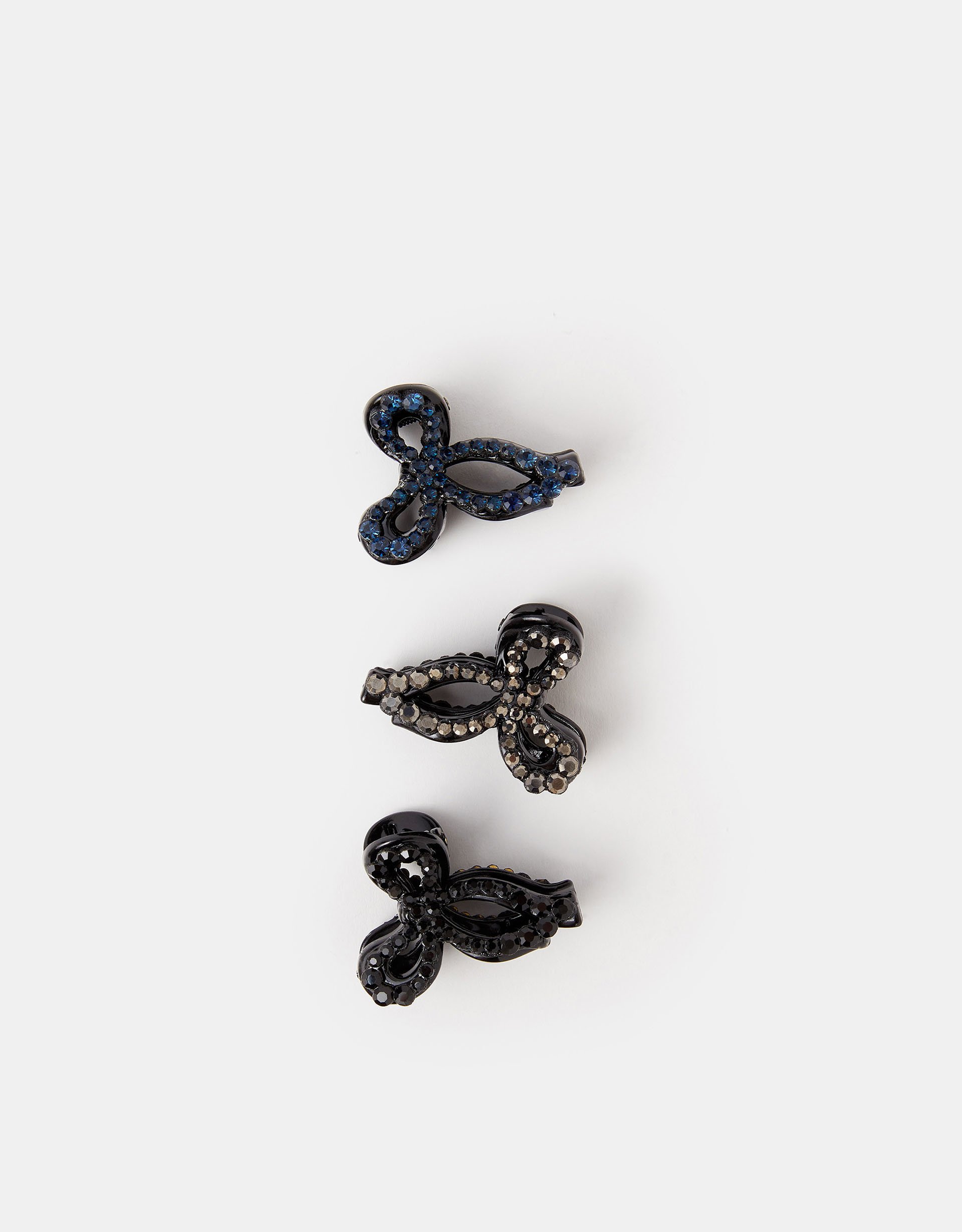 Embellished with jewel-toned gemstones, these mini claw clips deserve a space in your drawer. Whether you're adding a bit of shine to your office 'fit or heading out-out with the girls, they'll be adored by everyone. Take a bow! Three included.