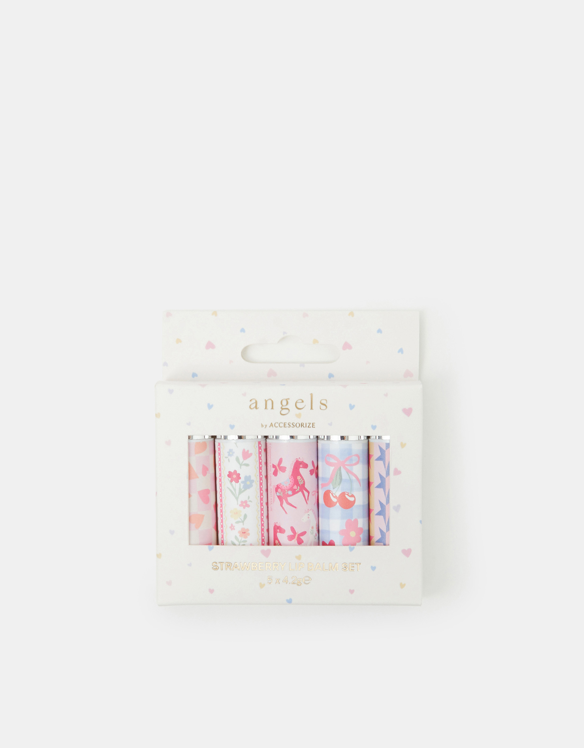 Red, Blue & Orange Heart Print Prairie Lip Balm Set 5-Pack, Size: 9cm - Accessorize