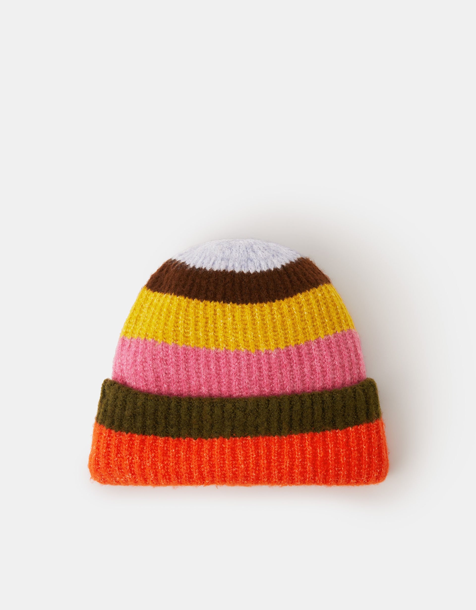 Not only will this beanie brighten up your winter outfits, it'll brighten up everyone else's day, too. Knitted with stripes in striking colours, it's finished with a classic turned-up brim.