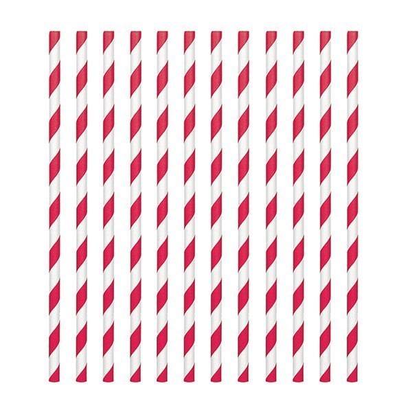Red Candy Stripe Paper Straws - Pack of 24