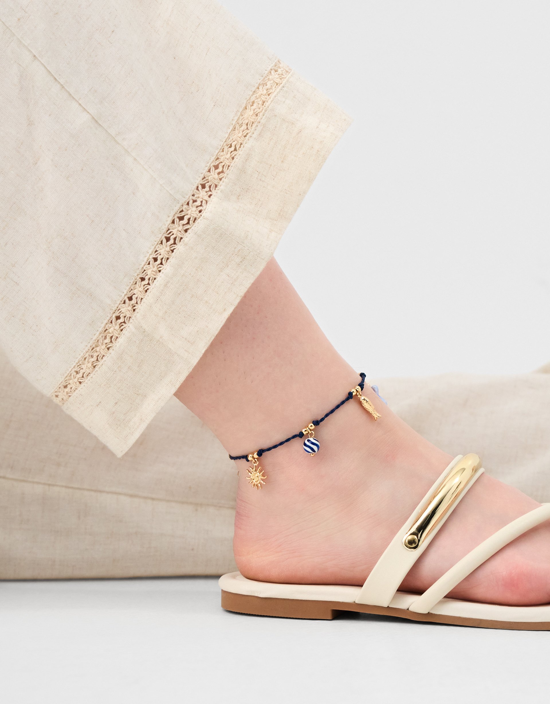 Fancy dipping your toes in the water? Decorated with ocean-inspired charms on a twisted thread, this anklet is a must-have for those who can't stay away from the sea.