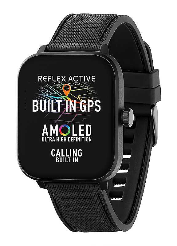 The Reflex Active Series 44 Amoled calling smart watch with built in GPS tracks your exercise routine by satellite navigation ensuring your data and route are precisely recorded for an accurate training programme. The high definition Always-On display, means you no longer need to touch your watch or lift your arm to activate the display and our Dual-Time feature shows the time home and away, to ensure you always keep on track while traveling.There are so many great sports modes included, with over 100 to choose from via the Reflex Active App. All the favourites are there including running, hiking, cycling, treadmill as well as many more to try. To help you improve your fitness and training techniques this app also has sleep, heart rate and health reminders so you can rest and recover after your workouts.The watch dials are interchangeable with a variety of options to choose from. You can also upload dials from the extensive Reflex Active dial library via the App or even create your own using personal photos from your phone.Make and receive calls direct from your wrist, as well as access weather updates and notifications without using your phone. Stay updated on the go while listening to your favourite tunes with the music control function.Presented in a stylish gift box, our smartwatches come complete with an instruction manual, USB charger, and a 2-year guarantee.Download the free Reflex Active App for even more features!Compatible with Android 9.0+ and iOS 12+.Brand: ReflexCompatible with iPhone & AndroidBluetooth 5.2 connection35.3mm TFT LCD screenTouchscreen360 x 360 screen resolutionBattery - Typical usage time of up to 4 days. Low usage time of up to 10 days. 3 hour chargeWatch size - H45.4 x W37.6 x D12mmStrap size L275, W22, T2mmStrap can be removed and replacedWater resistantDust resistantMake callsAnswer callsRead textsRead emailsReceive social network notificationsDisplays weatherMusic playerHeart rate monitorDistanceAccelerometerGPSCaloriesSleepAccessories included: Charger and Guarantee, including chargerManufacturer's 2 year guarantee
