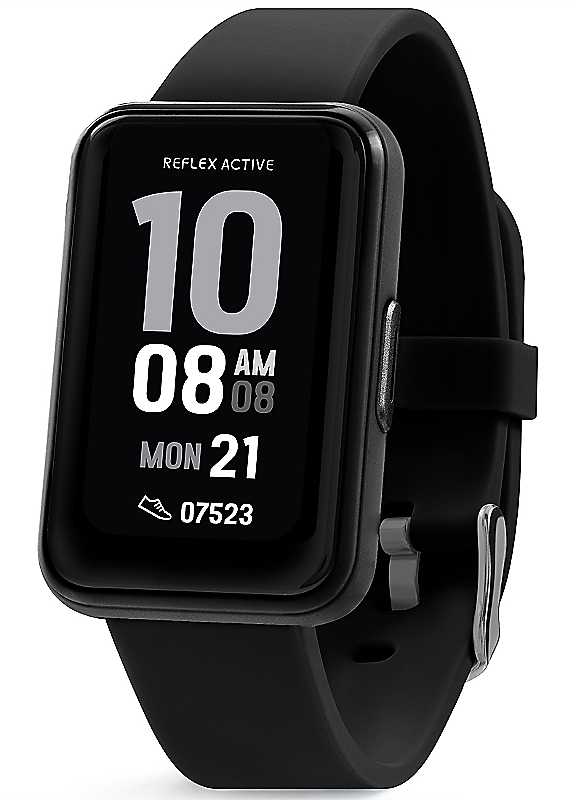 The Reflex Active Series 49 Smart watch allows you to stay connected with the convenience of hands-free calling, to make and receive calls directly from your watch anytime, anywhere.There are a variety of interchangeable dials so you can personalise or customise by using your own photo.The Series 49 also offers an extensive range of lifestyle & wellness features, including step count, heart rate monitor, blood oxygen, cycle tracking, calories, sleep analysis, multiple sports tracking and more.Lightweight polymer case with silicone strap, IP68 water resistant.To explore the full range of Reflex Active Series 49 features download the Reflex Active app, compatible with Android 9.0+ and iOS 12.Connectivity: Bluetooth 5.2 connection39.87mm TFT screenTouchscreenBattery: 200mAh battery capacity / Typical usage time of up to 4 days / Low usage time of up to 10 days / 3 hour chargeSize: one size strap fits 150 - 220mm wristsWatch size - H45 x W30 x D12mmStrap size - L260 x W18 x T2mmStrap can be removed and replacedWeight 34gHealth & Fitness Features: Workouts / Heart rate monitor / Sleep trackingTech Features: Displays weather / Music player / Smart phone notifications / GPS / Compatible with apps from the Google play store, Apple app storeWater resistantDust resistantManufacturer's 2 year guarantee | black strap watch, iphone smart watch, rechargeable watch, black wrist watch, water resistant watch, smart watch strap, android smart watch, step counter watch, digital watch, smart watch for ios and android, heart rate monitor, fitness tracker watch, calling smart watch, rectangular watch, calorie tracking watch, smart watch, sleep tracking watch