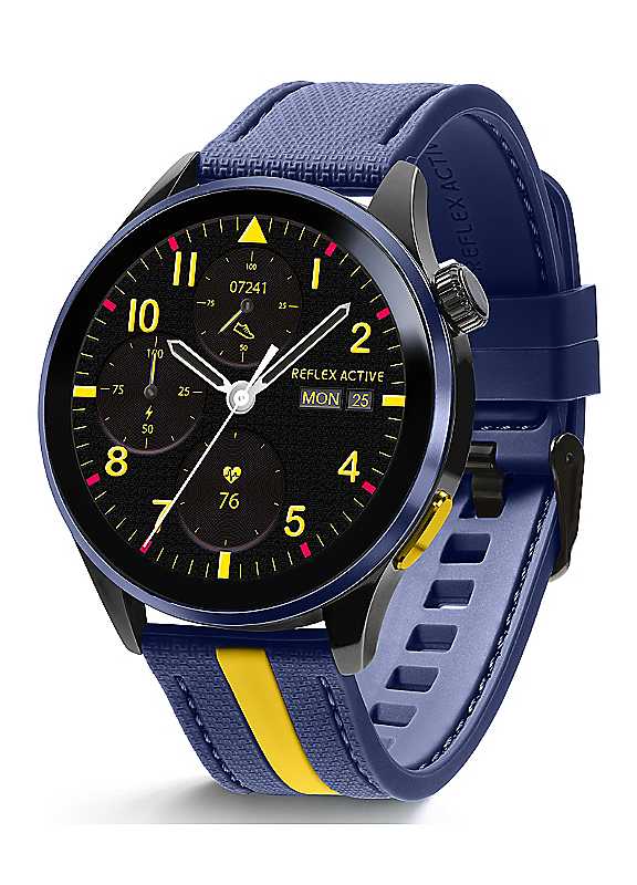 Reflex Active Series 54 AMOLED GPS Blue and Yellow Smart Calling Watch - Size BLUE/YELLW