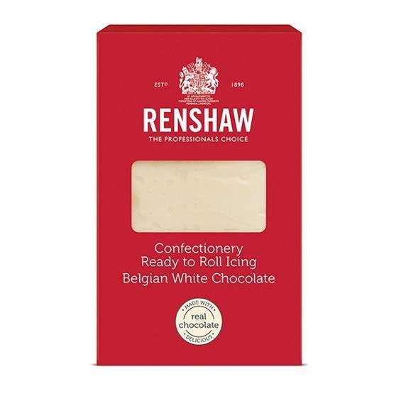 A high-quality, white chocolate flavoured sugarpaste by Renshaw. This ready to roll icing contains 11% white belgian chocolate and is perfect for covering cakes and modelling.