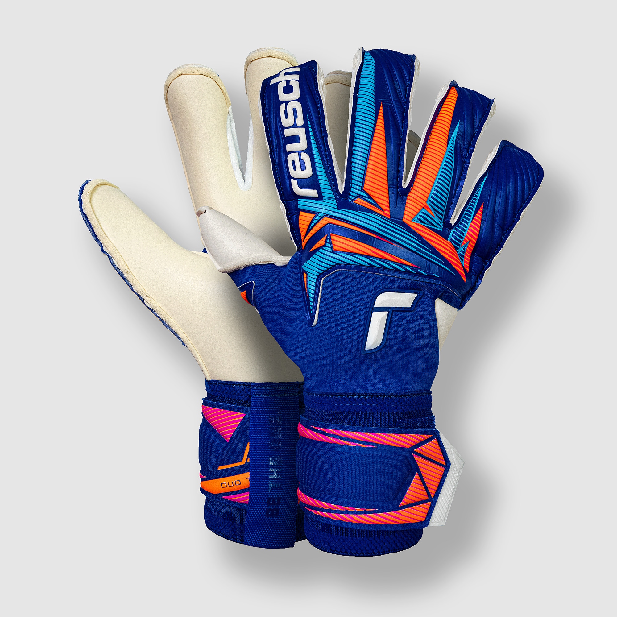 Put your skills on full display wearing Reusch Attrakt Duo Evolution Cut goalkeeper gloves in Sharp BlueWhiteShocking Orange. With design tweaks courtesy of Reuschs GKLAB innovation centre, the Attrakt offers the cuttingedge performance you expect from the series in a refined package.The streamlined backhand and fingertips give a light, natural feel that lets you play with freedom, boosting your confidence when punching, catching, and handling the ball.The backhand base is once again made from PerformSkin. A 2mm layer of foam sandwiched between two layers of recycled polyester, PerformSkin offers stability, flexibility, and breathability for maximum comfort during play.On the Duo edition, theres latex on the inside, with Duo technologys 3D latex dots allowing a direct connection between ball and hand for increased tactility, while also preventing slippage within the glove.The latex itself is based on ReuschGrip Gold, ensuring a winning combination of grip and durability. Attrakt range endorsed by Alisson Becker Cut Evolution Cut Palm ReuschGrip Duo Wrist Closure Elastic cuff with pull loop, full strap with rubber ender Backhand Base PerformSkin Punching Zone Latex Gussets Textile Duo Technology AirVentSystem Preshaped construction 3D Thumb Crotch Thumb Wrap Side Wrap