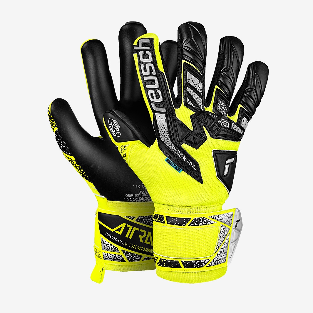 Take command of the game with Reusch Attrakt Freegel Silver goalkeeper gloves in Safety YellowSilverBlack, featuring more latex coverage than ever for superior ball contact and grip. Upgraded with additional latex at the fingers, thumb, and side of the hand, the design gives you complete control when catching, handling, and throwing the ball. As well as more grip, the extra latex provides greater structure to the glove for an anatomical, supportive fit.On the backhand, Freegel silicone concentrated at the knuckles adds stability to the punching zone while maintaining flexibility. AirVentSystem mesh keeps your hands fresh and ready for action. Attrakt range endorsed by Alisson Becker Cut Evolution Negative Cut Palm ReuschGrip Silver Wrist Closure Elastic cuff, full strap with textile window Backhand Base Textile Punching Zone Freegel Gussets Textile AirVentSystem Preshaped construction 3D Thumb Crotch
