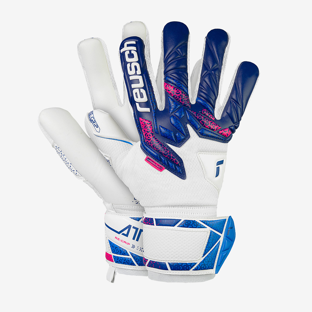 Keep performing for longer with Reusch Attrakt REGRIP Negative Cut goalkeeper gloves in BluePinkWhite, the second generation of the REGRIP series. Made utilising Reuschs latest material technologies, the updated Attrakt REGRIP offers the perfect combination of grip, durability, and comfort. The REGRIP palm fuses an outer layer of soft, 2mm Gold X latex with an underlayer of highly durable 2mm Infinity latex. So, you get the matchquality stickiness of Gold X for the first part of the gloves life, then the abrasionresistant Infinity latex takes over as the palm starts to wear. For keepers who like to wear the same gloves for matches and training, its the ideal setup. On the backhand, soft and breathable textile is bolstered by additional latex, with embossing in the punch zone offering extra cushioning and greater control over clearances. At the wrist, the triedandtested elastic cuff with fulllength strap keeps the gloves secure and lets you focus on your game. Cut Negative Cut Palm REGRIP Wrist Closure Elastic cuff, full strap with textile window Backhand Base Textile Punching Zone Latex Gussets Textile REGRIP Technology AirVentSystem Preshaped construction 3D Thumb Crotch Thumb Wrap