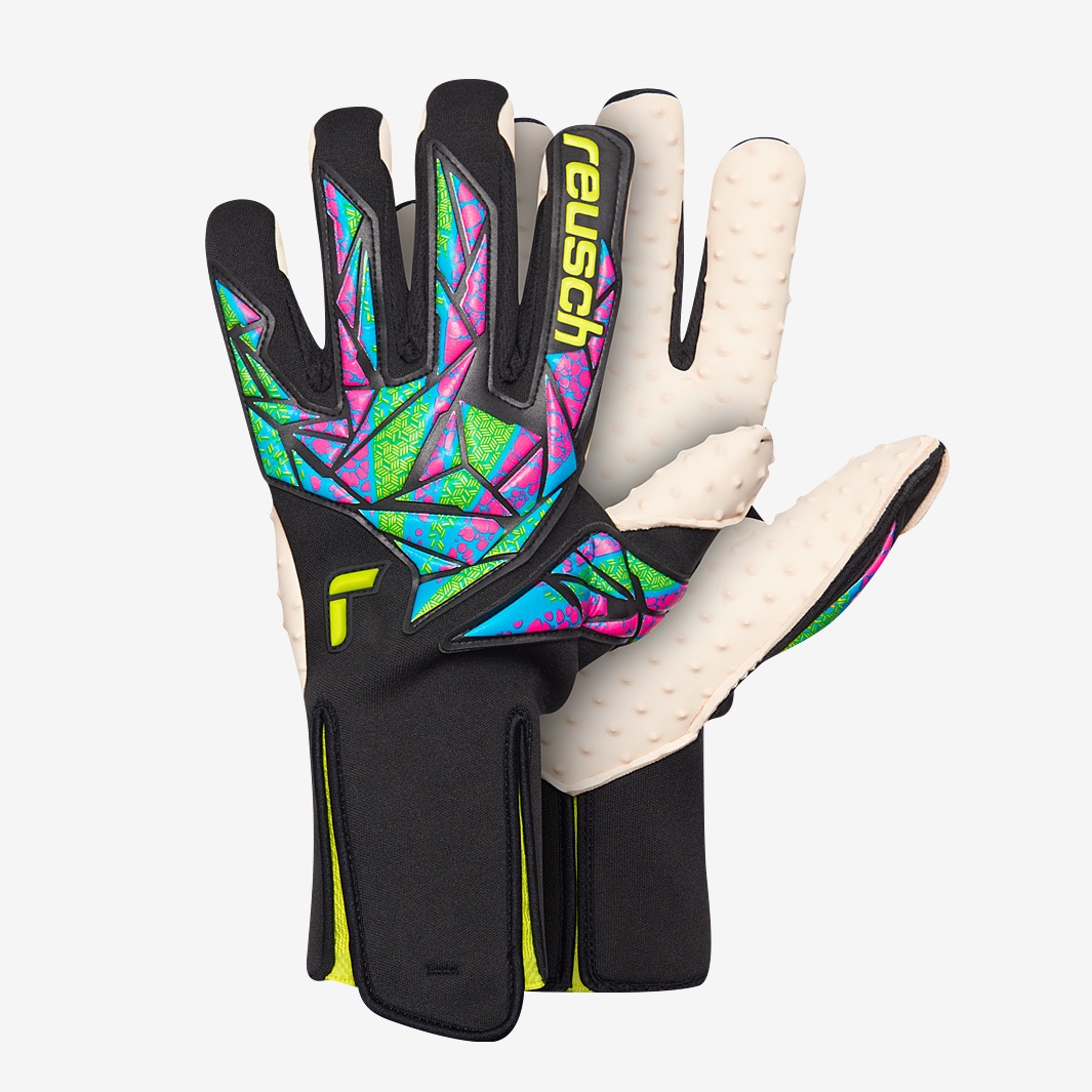 Make elitelevel saves with Reusch Attrakt SpeedBump Strapless AdaptiveFlex goalkeeper gloves in BlackSafety Yellow, featuring a new closure system that combines support and flexibility. The AdaptiveFlex closures duallayer design stretches to accommodate a wider range of wrist shapes and sizes, while maintaining a tight, secure feel to give you full confidence in your gloves. On the palm, SpeedBump spikes provide gluelike grip. The spikes increase surface area for greater friction on ball contact, keeping the ball secure in your hands when catching while also improving durability as you push shots around the post. Thanks to the AdaptiveFlex closure, the glove also features an Extended Grip Zone for even more secure handling. On the backhand, lightweight latex provides additional stability in the punching zone while retaining a streamlined feel. Cut Evolution Negative Cut Latex ReuschGrip SpeedBump Wrist Closure AdaptiveFlex, strapless Backhand Base Neoprene Punching Zone Latex Gussets Textile Extended Grip Zone Preshaped construction 3D Thumb Crotch Rolled Thumb AdaptiveFlex Closure System Strapless
