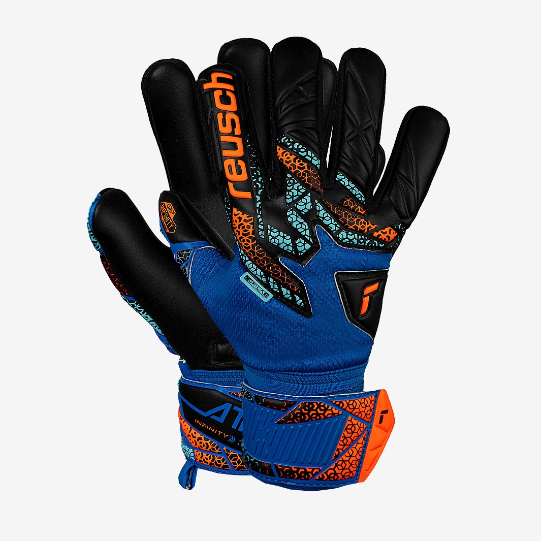 Take command of the game with Reusch Kids Attrakt Infinity Negative Cut goalkeeper gloves in Electric BlueShocking OrangeBlack, featuring more latex coverage than ever for superior ball contact and grip. Upgraded with additional latex at the fingers, thumb, and side of the hand, the design gives you complete control when catching, handling, and throwing the ball. As well as more grip, the extra latex provides greater structure to the glove for an anatomical, supportive fit.The palms ReuschGrip Infinity latex ensures longlasting performance thanks to its highly abrasionresistant construction, which utilises a highdensity structure to withstand increased friction and maximise grip over time. A DuraGuard patch at the base of the palm further enhances durability.On the backhand, Punch Foam concentrated at the knuckles adds stability to the punching zone while maintaining flexibility. AirVentSystem mesh keeps your hands fresh and ready for action. Attrakt range endorsed by Alisson Becker Cut Negative Cut Palm ReuschGrip Infinity Wrist Closure Elastic cuff, full strap Backhand Base Textile Punching Zone Punch Foam Gussets Textile DuraGuard AirVentSystem Preshaped construction 3D Thumb Crotch