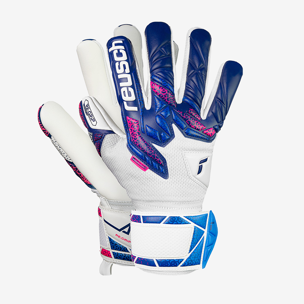 Keep performing for longer with Reusch Kids Attrakt REGRIP Negative Cut goalkeeper gloves in BluePinkWhite, the second generation of the REGRIP series. Made utilising Reuschs latest material technologies, the updated Attrakt REGRIP offers the perfect combination of grip, durability, and comfort.The REGRIP palm fuses an outer layer of soft, 2mm Gold X latex with an underlayer of highly durable 2mm Infinity latex. So, you get the matchquality stickiness of Gold X for the first part of the gloves life, then the abrasionresistant Infinity latex takes over as the palm starts to wear. For keepers who like to wear the same gloves for matches and training, its the ideal setup.On the backhand, soft and breathable textile is bolstered by foam in the punch zone, offering extra cushioning and greater control over clearances.At the wrist, the triedandtested elastic cuff with fulllength strap keeps the gloves secure and lets you focus on your game. Cut Negative Cut Palm REGRIP Wrist Closure Elastic cuff, full strap with textile window Backhand Base Textile Punching Zone Punch foam Gussets Textile REGRIP Technology AirVentSystem Preshaped construction 3D Thumb Crotch
