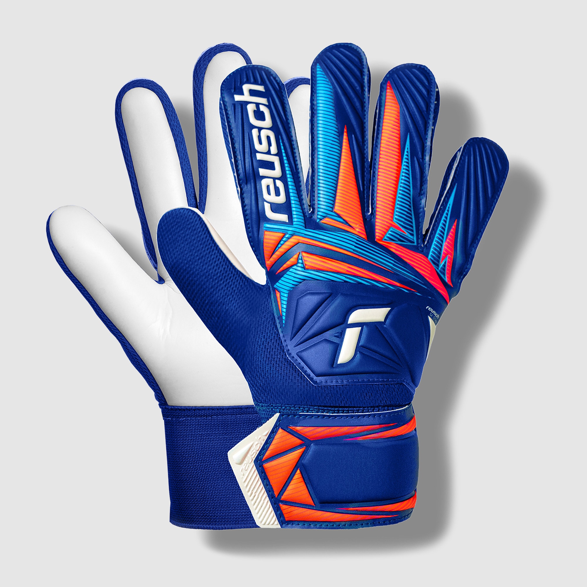 Put your skills on full display wearing Reusch Kids Attrakt Starter Solid goalkeeper gloves in Sharp BlueWhiteShocking Orange, designed for extra durability on artificial grass and hard surfaces. With design tweaks courtesy of Reuschs GKLAB innovation centre, the Attrakt offers the cuttingedge performance you expect from the series in a refined package.The streamlined backhand and fingertips give a light, natural feel that lets you play with freedom, boosting your confidence when punching, catching, and handling the ball.On the palm, white latex is back, complementing the bold, dynamic look of the gloves. The ReuschSolid latex stands up to the additional friction associated with hard surfaces thanks to its highly abrasionresistant formula.On the backhand, Punch Foam concentrated at the knuckles adds stability to the punching zone while maintaining flexibility. The breathable textile base material and simple halfwrap strap ensure comfort during play. Attrakt range endorsed by Alisson Becker Cut Negative Cut Palm ReuschSolid Wrist Closure Open cuff, half strap Backhand Base Textile Punching Zone Punch Foam Gussets Textile