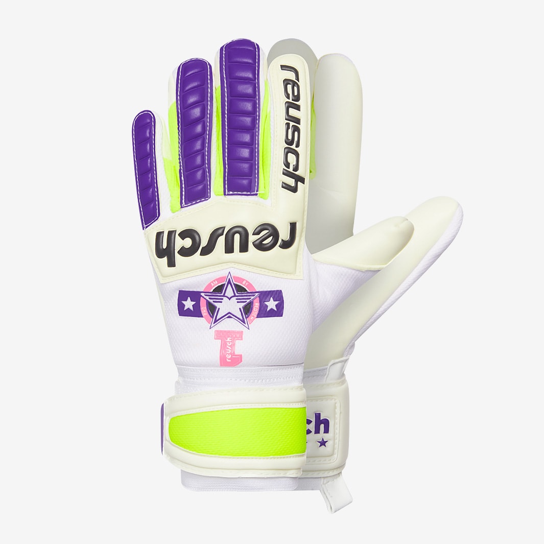 Make saves like a legend wearing Reusch Legacy Pro Am Silver goalkeeper gloves in WhitePurple, a modern take on one of goalkeepings most famous designs. Built with highvolume ReuschGrip Silver latex, the Reusch Legacy Pro Am Silver provides a great balance between grip and impact absorption. The gloves popular Evolution Negative Cut ensures a snug fit, while the mesh and latex backhand offers comfort and punching power in equal measure. A full strap closure keeps them secure. Lookswise, the Legacy range takes inspiration from Reuschs long heritage in the game, featuring oldschool colours and graphics along with their original logo as used 30 years ago. A new addition to the series, the Legacy Pro Am doubles down on the classic styling, featuring Reuschs Pro Am star branding on the backhand, a classic reminder that their gloves are for everyone, whatever your level of play. Palm ReuschGrip Silver Cut Evolution Negative Cut Wrist Closure Elastic cuff latex full strap with textile window Backhand Base Jacquard mesh Punching Zone Latex Gussets Textile AirVentSystem Preshaped construction 3D Thumb Crotch Thumb wrap