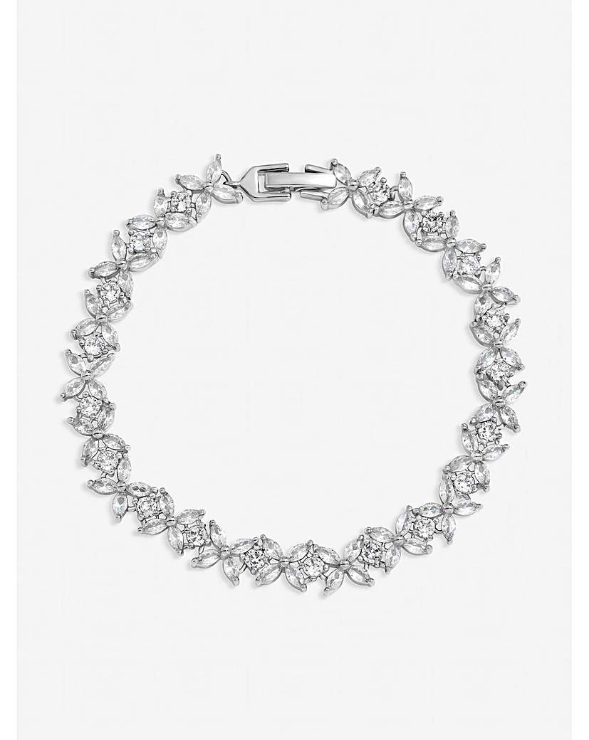 Jon Richard Rhodium Plated Cubic Zirconia Floral Bracelet The Jon Richard Rhodium Plated Cubic Zirconia Floral Bracelet is a delicate and sophisticated addition to any jewellery collection. Featuring sparkling cubic zirconia in an elegant floral motif, it catches the light beautifully with every movement. Perfect for both day and evening wear, this bracelet adds refined sparkle and timeless charm to the wrist. Fastening: Lobster clasp Material: Rhodium plated base metal Chain length: 7, extender length: 1". Width: 7mm, length: 7mm. "