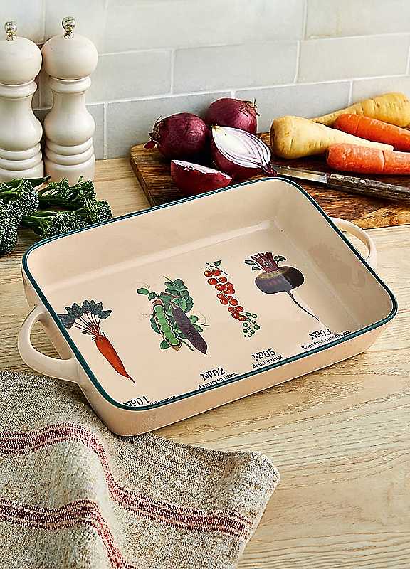 This beautifully crafted rectangular stoneware oven dish is perfect for making lasagnes, pies, gratins or roasting vegetables. This beautifully crafted stoneware oven dish is perfect for making lasagnes, pies, gratins or roasting vegetables. From oven to table this handy dish can also be used to store leftovers in the freezer. Made from 100% stoneware with easy grab handles to ensure safe handling at any temperature. The benary print has been sourced directly from the royal horticultural society (RHS) Lindley collections which houses one of the largest collections of botanical drawings, paintings and literature in the world.The benary vegetables oven dishes, available in three sizes, complement our matching placemats and coasters, along with our existing benary vegetables textiles and storage collections.® the royal horticultural society. Trade marks of the royal horticultural society (registered charity no 222879/sc038262) and used under licence from RHS enterprises limited.Capacity: 2.1L - feeds 4 to 6 peopleOven, freezer & dishwasher safeBenary vegetables printStoneware