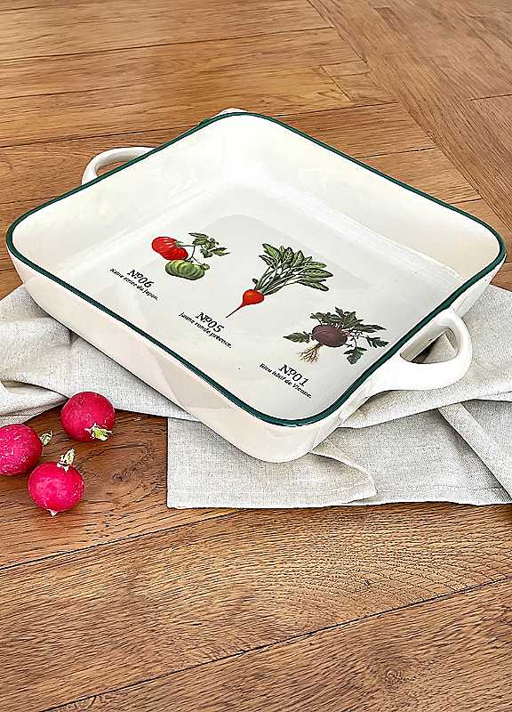 This beautifully crafted square stoneware oven dish is perfect for making gratins, pies and roasting vegetables. This beautifully crafted stoneware oven dish is perfect for making gratins, pies or roasting vegetables. From oven to table this handy dish can also be used to store leftovers in the freezer. Made from 100% stoneware with easy grab handles to ensure safe handling at any temperature. The benary print has been sourced directly from the royal horticultural society (RHS) Lindley collections which houses one of the largest collections of botanical drawings, paintings and literature in the world.® the royal horticultural society. Trade marks of the royal horticultural society (registered charity no 222879/sc038262) and used under licence from RHS enterprises limited.Serve straight from oven to tableCapacity: 2.1L - feeds 4 to 6 peopleOven, freezer & dishwasher safeBenary vegetables printStoneware