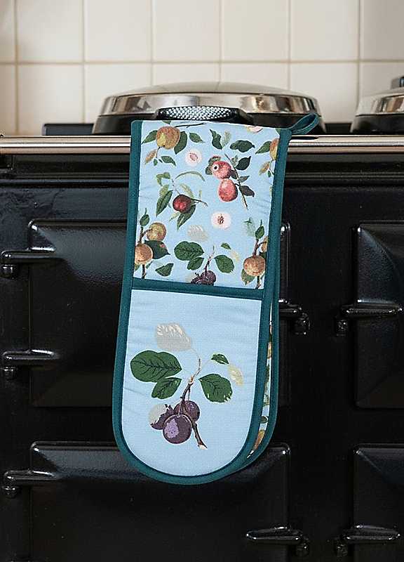 Stay protected when handling hot pots and pans with this bold and vibrant design. Designed in partnership with the RHS 'Hooker Fruits' print. Made from organic cotton yarn that is kinder to the environment as it uses less water, reduces soil erosion and does not use hazardous manmade pesticides. It also benefits the farmers who can grow additional crops alongside the cotton and maintains the biodiversity of the soil. The design features various apple, nectarine and plum varieties on a blue background with green trim. The fruit drawings come from William Hooker (1779-1832) - the greatest fruit illustrator of his day. Sourced directly from the Royal Horticultural Society (RHS) Lindley collections which houses the world's finest collection of books and printed materials on gardening and outstanding collections of archives, photography and botanical art.Handy hanging loopMachine washable at 30°C100% CottonSize approx. 90 x 18 cm