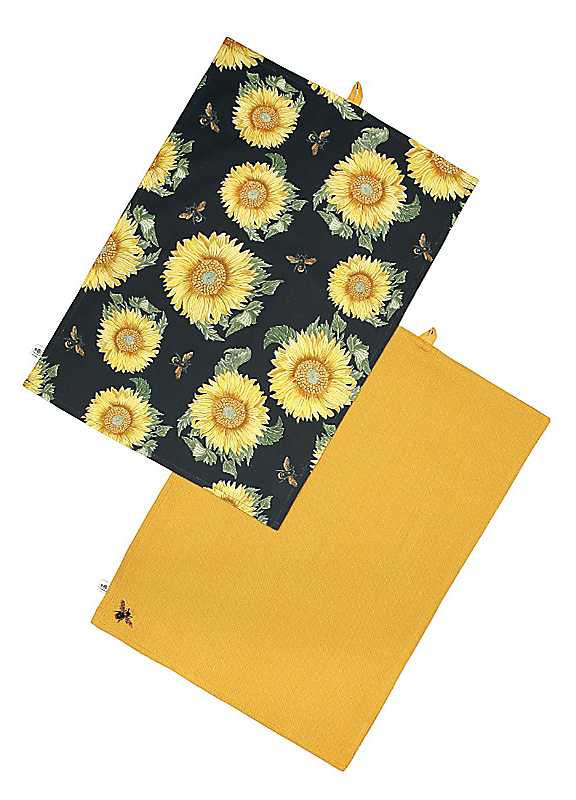 Designed in partnership with the RHS 'Sunflower and Bee' print, these colourful tea towels will certainly brighten up your home. This beautiful print has been sourced directly from the Royal Horticultural Society (RHS) Lindley collections which houses the world's finest collection of books and printed materials on gardening and outstanding collections of archives, photography and botanical art. Comes with a handy hanging loop and is printed on 100% Cotton.Set of 2Machine washable at 30°C100% CottonSize approx. 50 x 70 cm