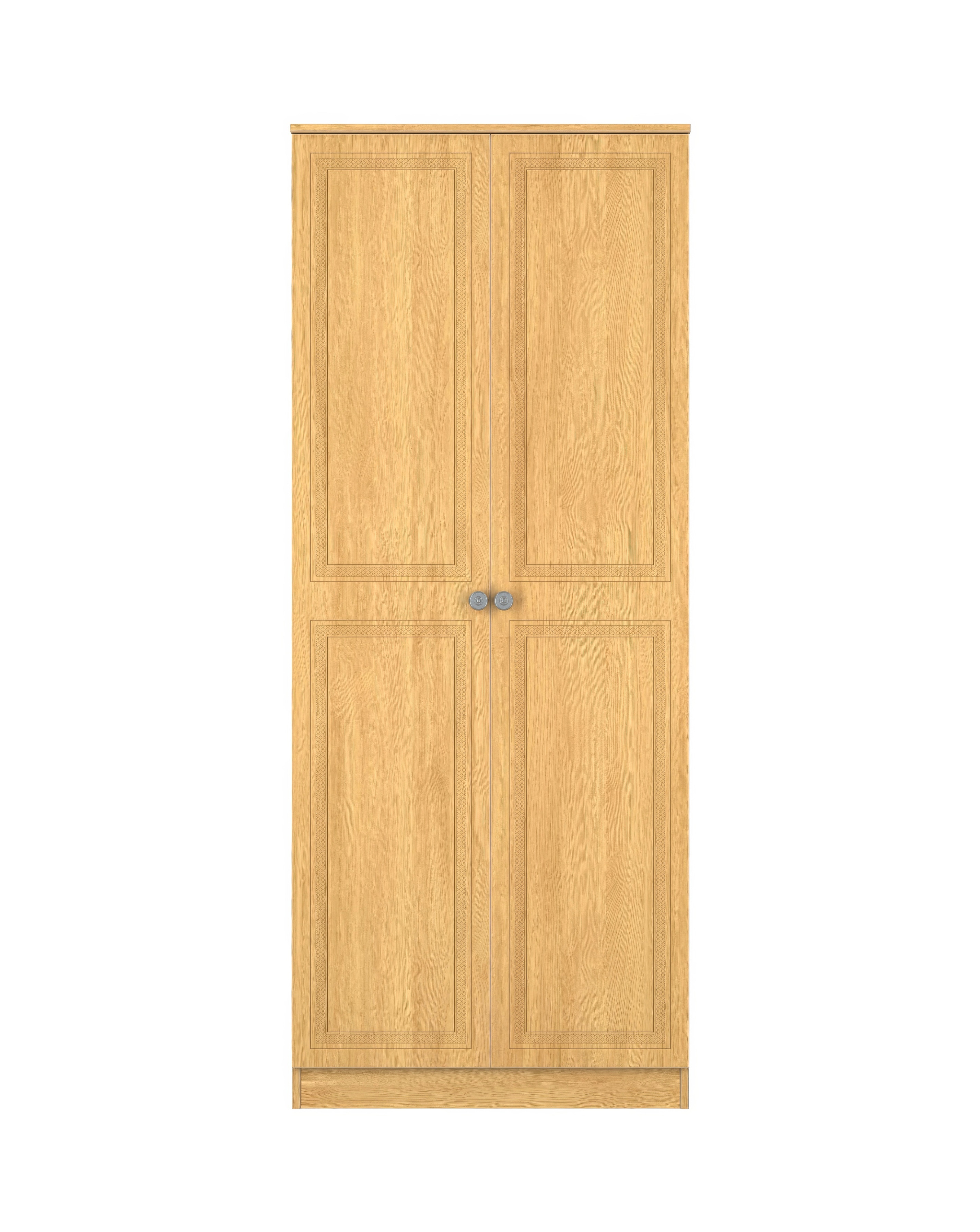 The Richmond 2 door wardrobe features embossed detailing and pewter coloured brushed metal handles. Finished in a warm oak effect colourway and fully scratch resistant. This product is made to order in the UK, ready assembled for you to use as soon as it has been delivered. Please note: We are unable to deliver to Ireland, Scottish Islands, Isle of Wight and Isle of Man.