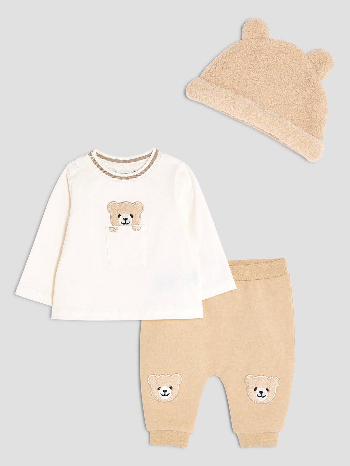 River Island Baby Boys Borg Bear Hat Set Size & Fit Available In Sizes 0-3 Months - 12-18 Months Details Boys Borg Bear Hat Set By River Island Baby Beige Set Of Three Bog Hat Long Sleeve Top Popper Fastening Round Neck Embroidery With Patch Pocket Elasticated Waist Bottoms Bear Embroidery Ribbed Cuff Material & Care Material Content: Cotton: 100% Washing Instructions: Machine Washable