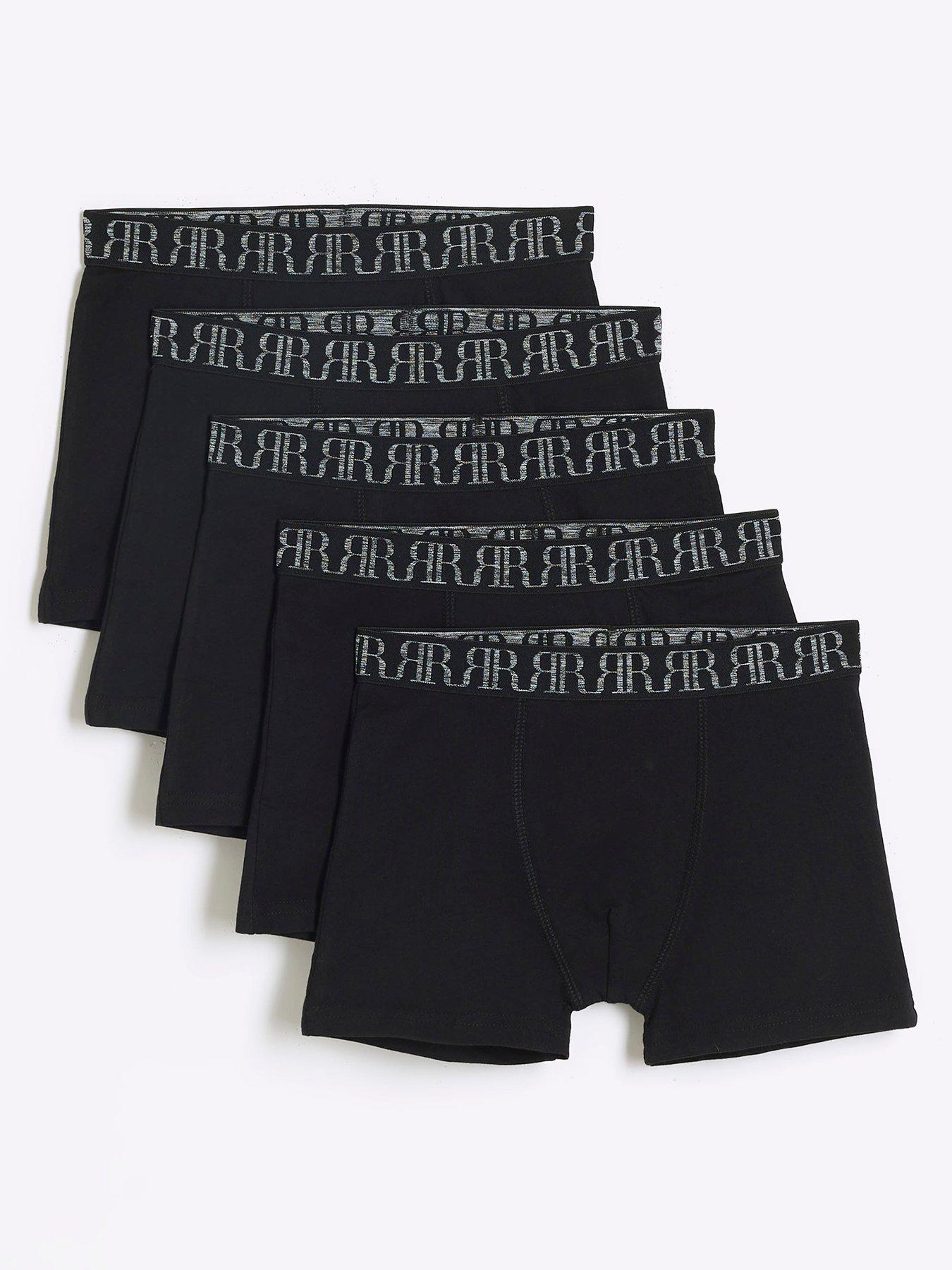 River Island Boys 5 Pack Boxer Older Boy Boxers 5 Pack - Black Material & Care Multipack of 5 RI elastic waistband Material Content: 100% Cotton Washing Instructions: Machine Washable