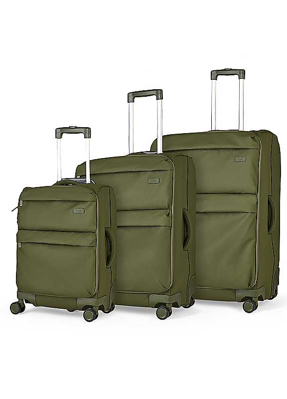 Rock Juniper 8 Wheel Softshell Suitcases 3 Piece Set - Khaki