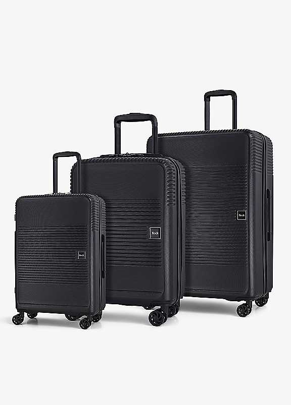 Lincoln delivers an easy departure for every trip. With sharp lines and practical production, Lincoln's a great choice for the budget-conscious traveller, seeking a stylish packing solution for every trip. Lincoln is a brilliant choice for efficient packing and effortless travel. Lincoln is equipped with a telescopic, push-button handle plus 8 smooth rolling wheels with effortless 360-degree rotation makes every journey a walk in the park. Built to last, all Rock products come with a 15-year manufacturer's warranty against manufacturing defects arising from faulty workmanship or materials. The 3 cases can be nested inside one another to save space when not in use.Small weight: 2.6kgSmall capacity: 31 litre capacityMedium weight: 3.5kgMedium capacity: 62 litreLarge weight: 4.4kgMaterial: PolypropyleneSmall dimensions approx. 54 x 35 x 21 cmMiddle dimensions approx. 66 x 45 x 26 cmLarge dimensions approx. 76 x 51 x 30 cm