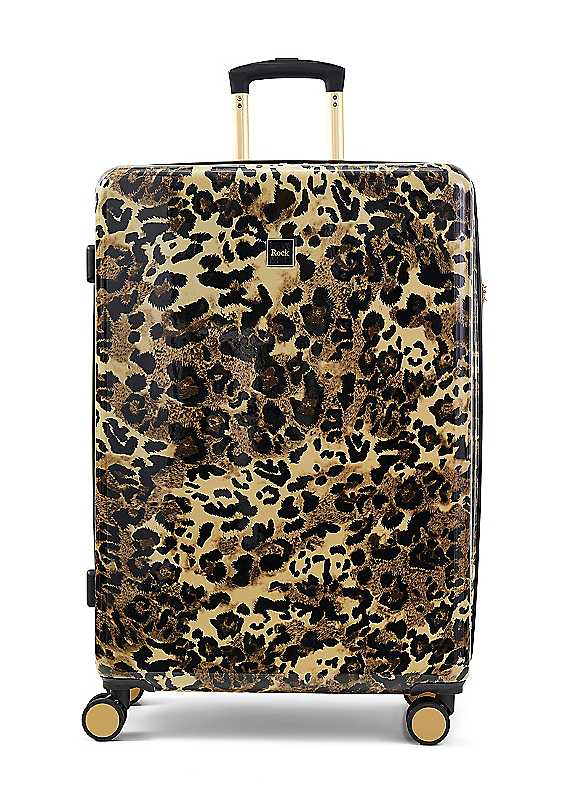 One of fashion's most enduring favourites, leopard print is always in style. Rock is proud to welcome Savannah to the pack. With its eye-catching design, premium fabrication, and effortlessly stylish finish, Savannah is the perfect companion for those with an eye for individuality. Savannah offers distinctive character with a slight sheen. Made from sturdy ABS and PC materials, Savannah is the perfect choice for adventures near and far, incorporating a telescopic push-button handle and smooth-rolling double wheels to make every trip effortless, plus a TSA-approved lock for complete peace of mind. Built to last, all Rock luggage comes with a 15-year manufacturer's warranty against manufacturing defects arising from faulty workmanship or materials.Weight capacity approx. 43kgCapacity approx. 94LSturdy Fabrication in ABS and PCDimensions approx. 77.5 x 52.5 x 28 cm | suitcase with wheels, leopard print luggage, tsa luggage locks, tsa approved locks