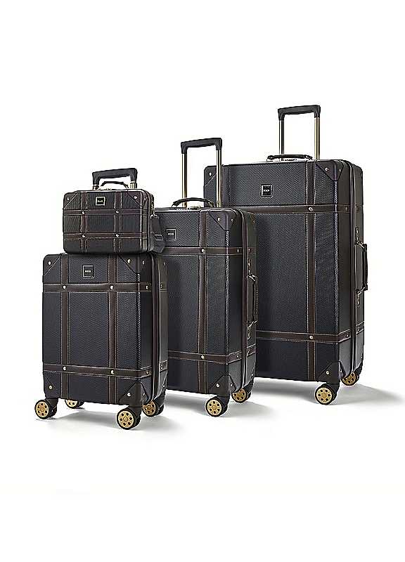 Made for Modern Explorers! This fashion forward trunk design embodies a classic timeless look with contemporary lightweight construction and strong, durable features. Built To Last- all Rock products come with a 15 year manufacturer's warranty against manufacturing defects arising from faulty workmanship or materials. 8 smooth rolling wheels and a telescopic, push-button handle will help you glide effortlessly on your travels (except Vanity). These suitcases are made of an impact-resistant, hard shell PC material. Tough, reinforced corners protect belongings from all the bashes and bumps of baggage handling. For your complete peace of mind, Vintage cases are fitted with an integrated Travel Sentry-approved TSA combination lock (except Vanity). Vintage Vanity delivers beautiful underseat or overhead stowage, and includes a shoulder strap for easy transportation, plus a top carry handle and back strap to easily wheel atop larger luggage. The interior has luxurious soft touch lining, a zipped pocket, and a mesh divider section. The design also features a convenient zipped inside pocket and elasticated packing straps to keep your clothes securely in place. 4 cases can be nested inside one another to save space when not in use.Van weight approx. 1.3kgVan capacity: 16 litreSmall weight approx. 3kgSmall capacity: 32 litreMedium weight approx. 4kgMedium capacity: 57 litreLarge weight approx. 5kgLarge capacity: 88 litreVan dimensions approx. 29.5 x 37 x 19 cmSmall dimensions approx. 55 x 35 x 22 cmMedium dimensions approx. 68 x 45 x 26 cmLarge dimensions approx. 78 x 50 x 29 cm