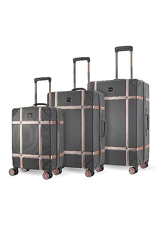 Rock Vintage 8 Wheel Hardshell Suitcases 3 Piece Set - Charcoal