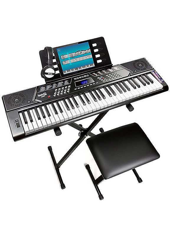 RockJam 61 Key Keyboard Piano Super Kit RJ5061 / Full-Size Electronic Piano with Stand, Stool, Headphones and Simply Piano Lessons.The RockJam RJ5061 61 Key Keyboard Super Kit is a complete package for students, teachers, and hobbyists who want a feature-rich, full-size keyboard with everything needed to start playing right away. With 200 instrument voices, 200 rhythms, 40 demo songs, and a pitch bend wheel, it offers incredible versatility for learning and performance.The large backlit LED screen makes it easy to navigate features, while the included keyboard stand, padded stool, and headphones ensure a comfortable and focused practice experience. With free access to the Simply Piano app, you can learn step-by-step with interactive lessons and real-time feedback.