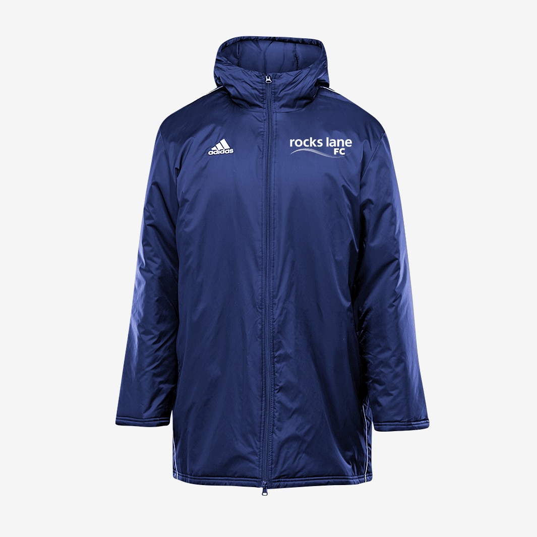 Made with padding for ultimate warmth and comfort, the Rocks Lane Junior Stadium Jacket features full hood construction, comfortable pockets and iconic adidas branding for a slick finish. With performance and style in mind, the Rocks Lane Junior Stadium Jacket in Dark Blue and White features lightweight fabric to ensure superior comfort and keep you dry.Official branding is proudly displayed, while adjustable hood and pockets provide additional coverage. Official Rocks Lane branding shows club pride. Full zip closure Comfortable pockets Full hood construction Longer cut Partial elastic on hood opening for snug fit Padded for warmth and comfort adidas Badge of Sport on chest 100 PolyamideRocks Lane branding