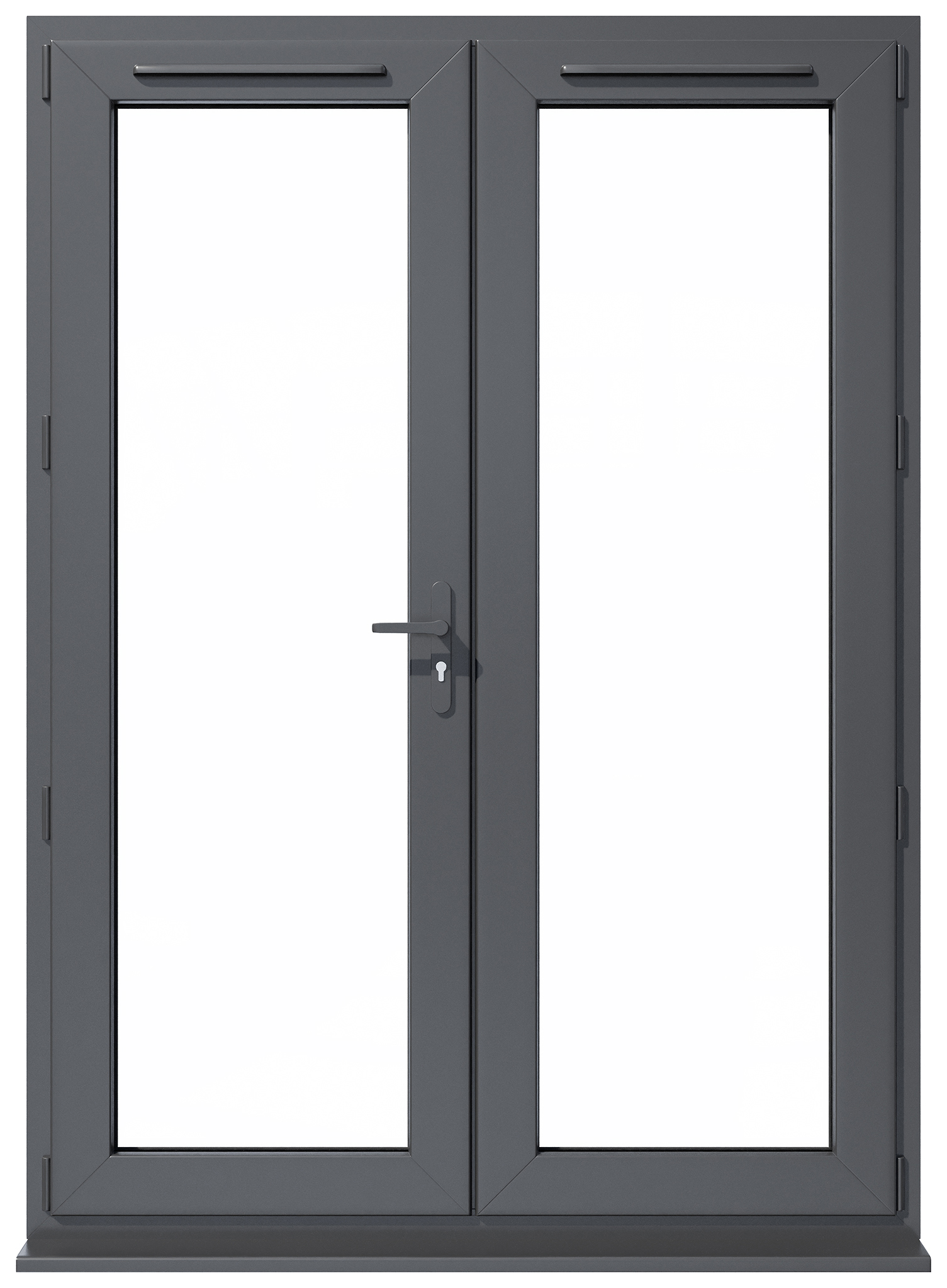 Rohden Grey uPVC External French Door Set - 1490 x 2090mm - Rohden Grey uPVC External French Door Set comes factory-glazed with high-performance clear insulating glass units to help reduce heating bills. This set features an anthracite grey finish on the outside and a white finish on the inside. The left-hand door opens first when viewed from outside, and it comes complete with a multipoint locking system, handles, threshold, and trickle vents.