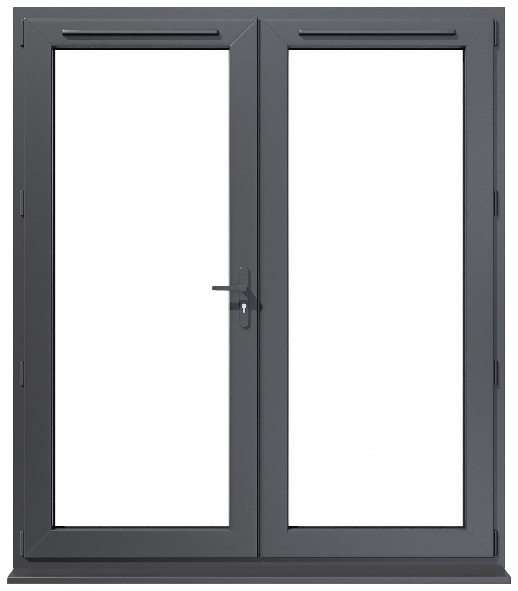 Rohden Grey uPVC External French Door Set - 1790 x 2090mm - Rohden Grey uPVC External French Door Set comes factory-glazed with high-performance clear insulating glass units to help reduce heating bills. This set features an anthracite grey finish on the outside and a white finish on the inside. The left-hand door opens first when viewed from outside, and it comes complete with a multipoint locking system, handles, threshold, and trickle vents.