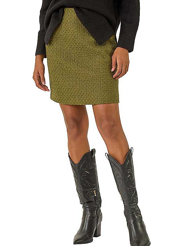 Roman Boucle Textured A-Line Skirt - Olive - Size 20
