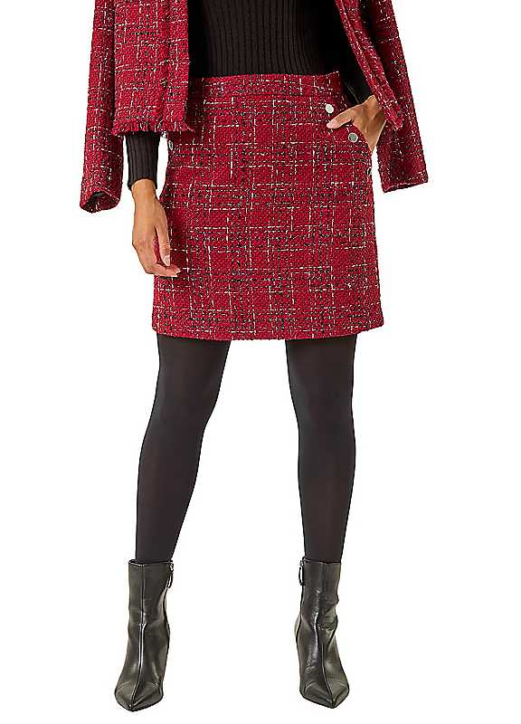 The check boucl© A-line skirt from Roman adds polish to your autumn/winter wardrobe. With a subtle check pattern, side zip, button detail, and lining, it's perfect for office-to-evening styling. Pair it with a crisp shirt, tights, and heels.Machine washable70% Polyester, 12% Acrylic, 7% Viscose, 4% Wool, 4% Cotton, 3% Polyamide