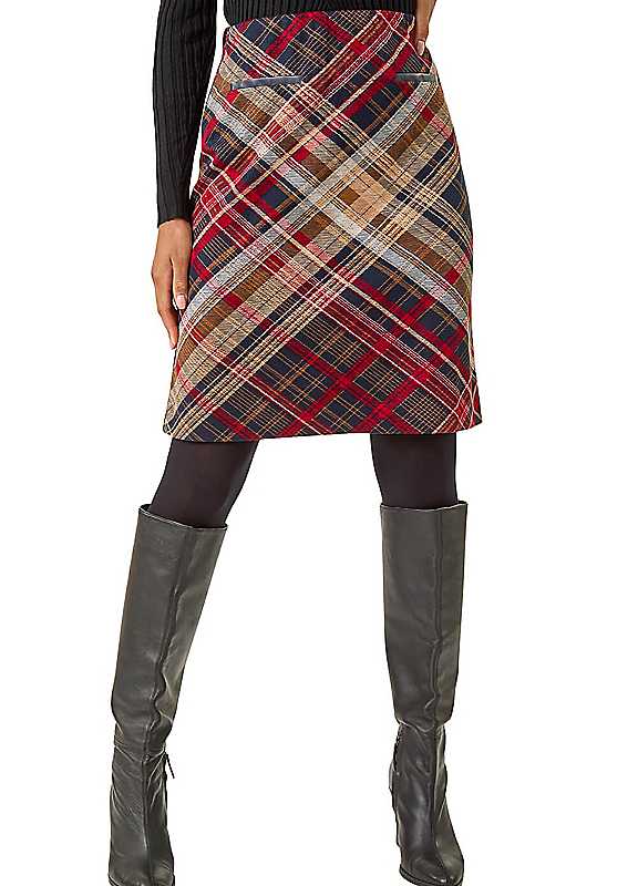 Check print stretch pencil skirt from Roman. Step out in style this autumn winter with this chic pencil skirt. The elasticated waist ensures a comfortable fit while the smooth stretch jersey fabric features a smart check print, perfect for adding a touch of sophistication to any outfit. Designed in a flattering pencil shape, this skirt provides a sleek fit. For a versatile day-to-night look, layer a cosy jumper with ankle boots!Machine washable65% Polyester, 35% Viscose