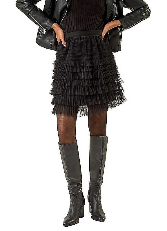 The mesh layered mini skirt from Roman is a chic addition to your wardrobe. Designed with a comfortable elasticated waistband and striking layered mesh detail, it is fully lined for added comfort and quality. Perfect for autumn/winter, pair it with knitwear and boots for a stylish look.Hand wash only100% Polyester