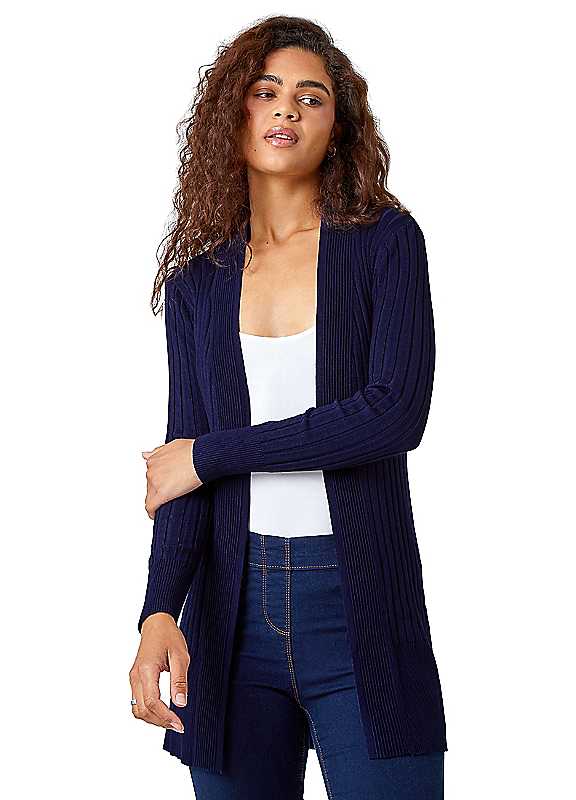 Longline stretch ribbed cardigan from Roman Originals. Fashionable and functional, this ribbed cardigan is the perfect piece to add to your autumn winter wardrobe. Cut from a stretch knitted fabric with long sleeves and a fluted cuff, this comfortable piece is perfect for the transitional season when the evenings are getting colder. Style this wardrobe staple from day to night with ease with its edge to edge opening making it so easy to layer. Paired with a simple tee and comfy pair of jeans, this cardigan is the epitome of comfort.Machine washable70% Viscose, 30% Polyamide