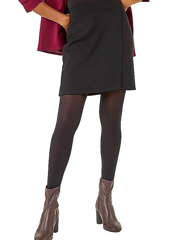 Ensure your Autumn and Winter wardrobe is on point with this casual wrap A-line skirt. Crafted from stretch jersey fabric, this skirt boasts a trendy wrap detail and an elasticated waist for a neat fit. The A-line shape provides a flattering silhouette that pairs perfectly with a smart blazer, blouse, and tights for a complete look that effortlessly transitions from day to night!Machine washable86% Viscose, 10% Polyamide, 4% Elastane