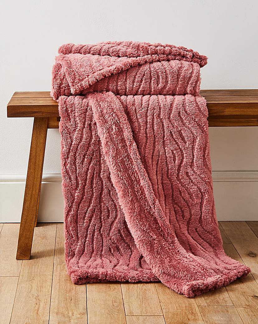 The Textured Wavy Fleece Throw features a subtle wave like texture adding a decorative accent to your sofa or bed. Size(cm): 120X150. Material: 100% polyester/flannel. 30 Degree Wash, Do not bleach, Cool tumble dry, Do not iron, Do not dry clean.