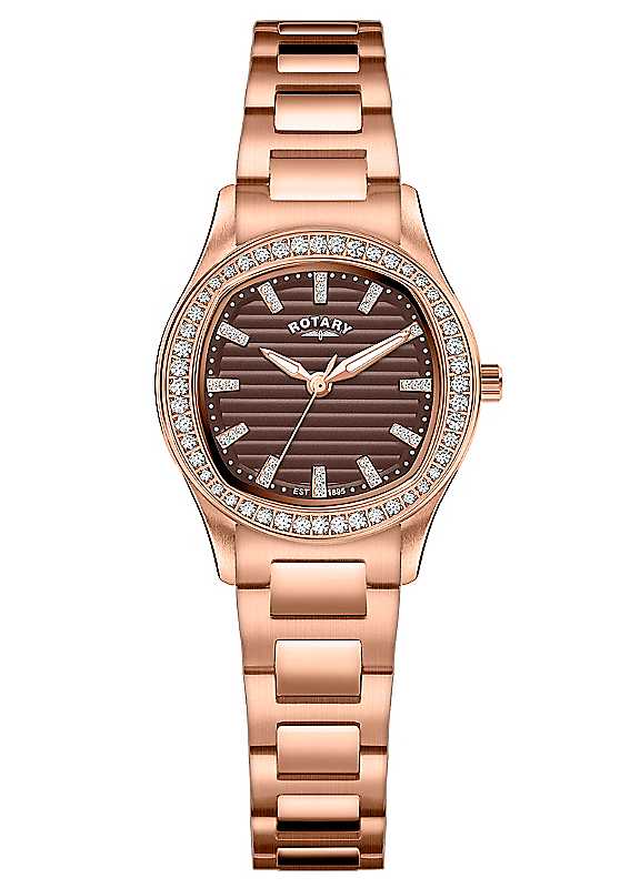This Rotary Brilliance model blends forward-thinking design with timeless femininity. Housed in a 34mm stainless steel case, the watch features a crystal-set bezel that catches the light with every movement, adding a subtle touch of glamour. The silver slatted dial enhances the watch's contemporary appeal, while shimmering baton hour markers bring refined luxury to the overall design. Powered by a reliable quartz movement and water-resistant to 50m, this timepiece is crafted for confident everyday wear. Finished with a 3-link stainless steel bracelet, the Rotary Brilliance strikes the perfect balance between sporty elegance and delicate proportions - ideal for those who appreciate versatility with style.50m Water ResistanceCrystal-Set BezelSilver Slatted DialStainless Steel | timeless women's watches, metal analog watch, silver watch with bracelet, water resistant analog watch, 5 bar water resistant watch, stainless steel wrist watch, quartz wristwatches, stainless steel back water resistant watch, high accuracy quartz watches, metal watch bracelet, watches water resistant, stainless steel quartz watch, silver stainless steel watch, ladies bling watches, stainless steel analog watch